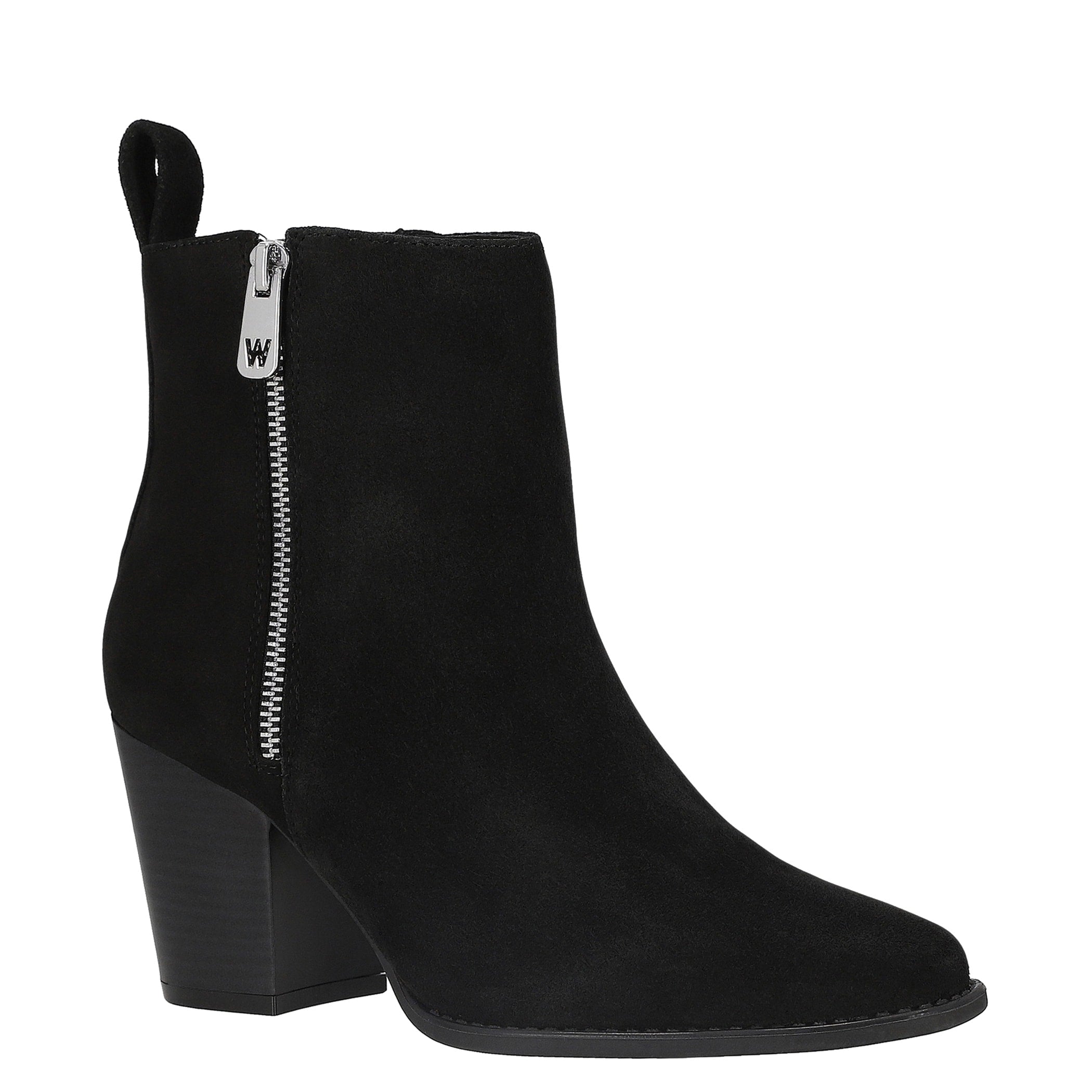 Estos botines con tacón Westies son la elección perfecta para un look sofisticado con un toque moderno. Confeccionados en material de gamuza con estampado liso y textura lisa, presentan una punta cuadrada que aporta carácter y estilo. La fijación de cierre permite un ajuste práctico y seguro, mientras que la cuña baja y el tacón de 7 cm brindan la altura ideal para estilizar tu silueta sin sacrificar comodidad.