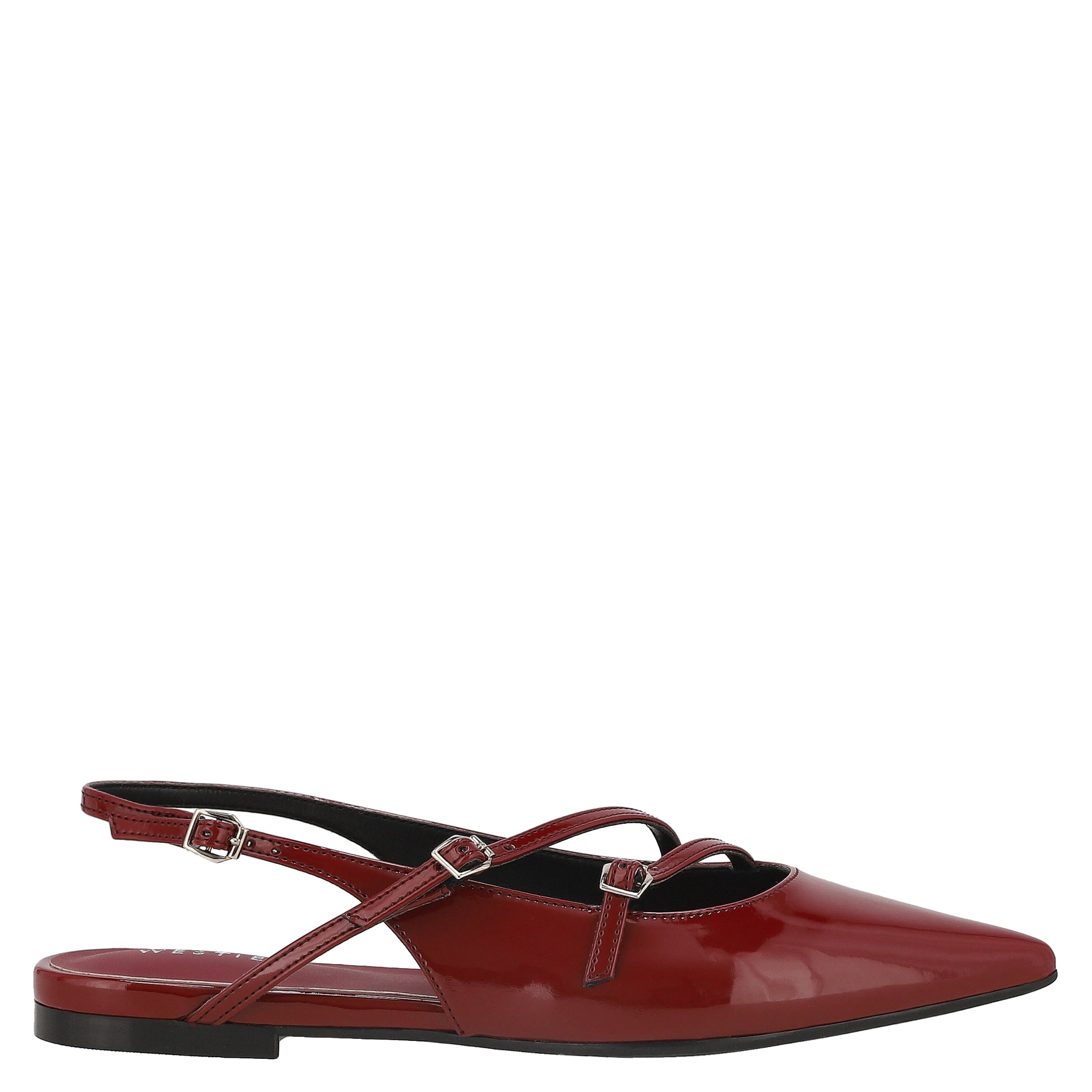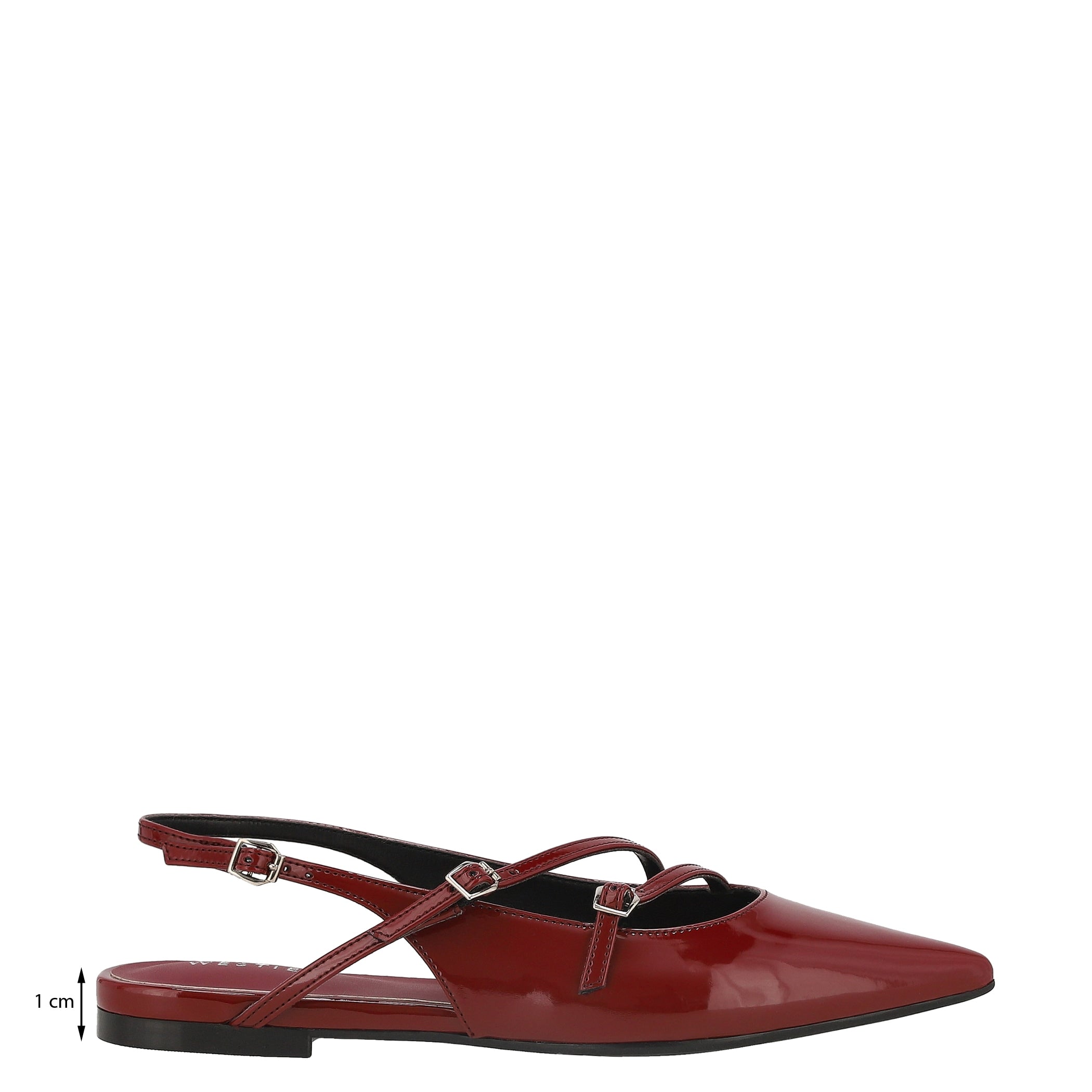 Añade un toque de elegancia y comodidad a tu estilo con estas balerinas Westies. Confeccionadas en material charol sintético con estampado liso y textura lisa, su diseño sofisticado destaca por la punta puntal que estiliza la silueta. La fijación de hebilla garantiza un ajuste seguro, mientras que la cuña flat y el tacón de 1 cm brindan confort para el día a día.