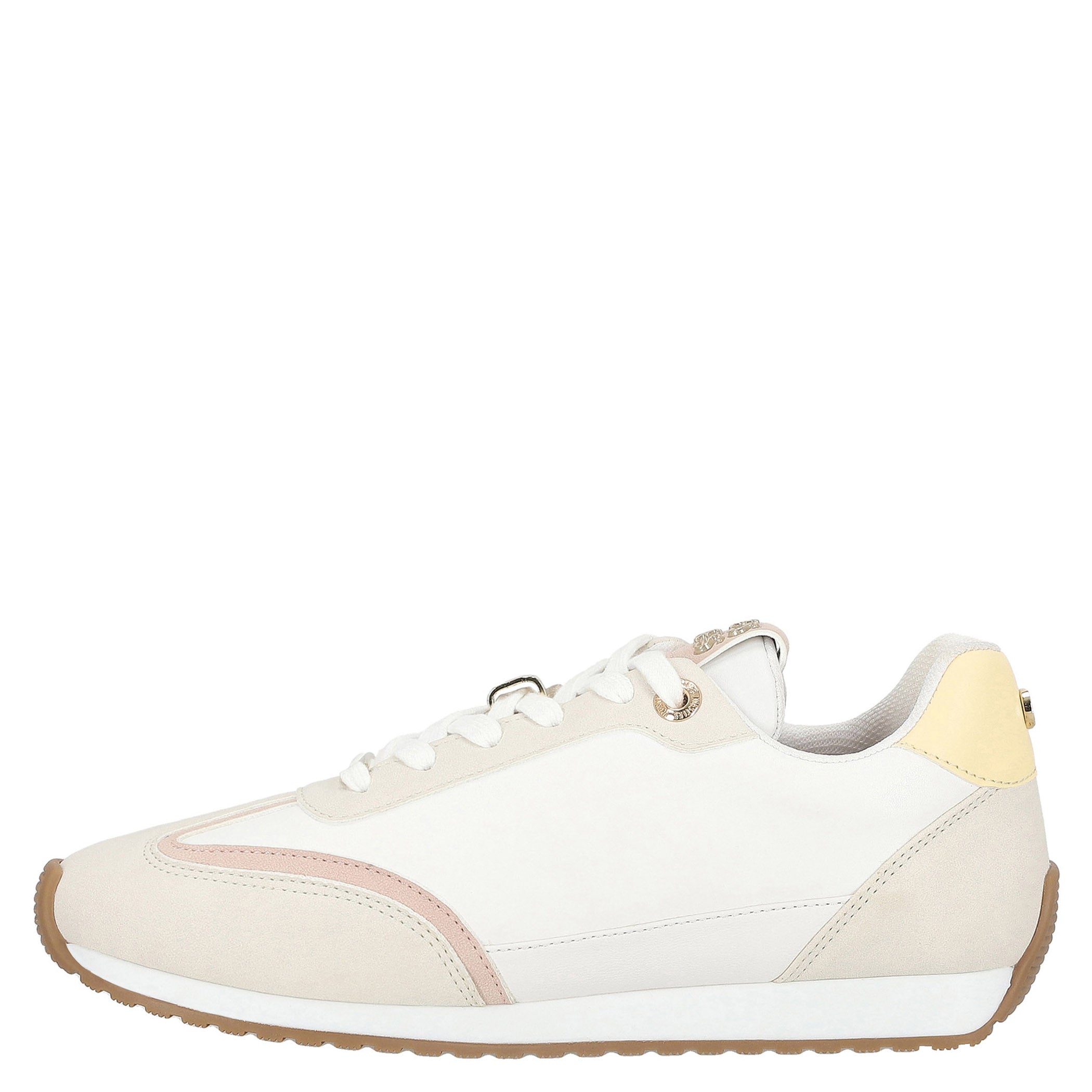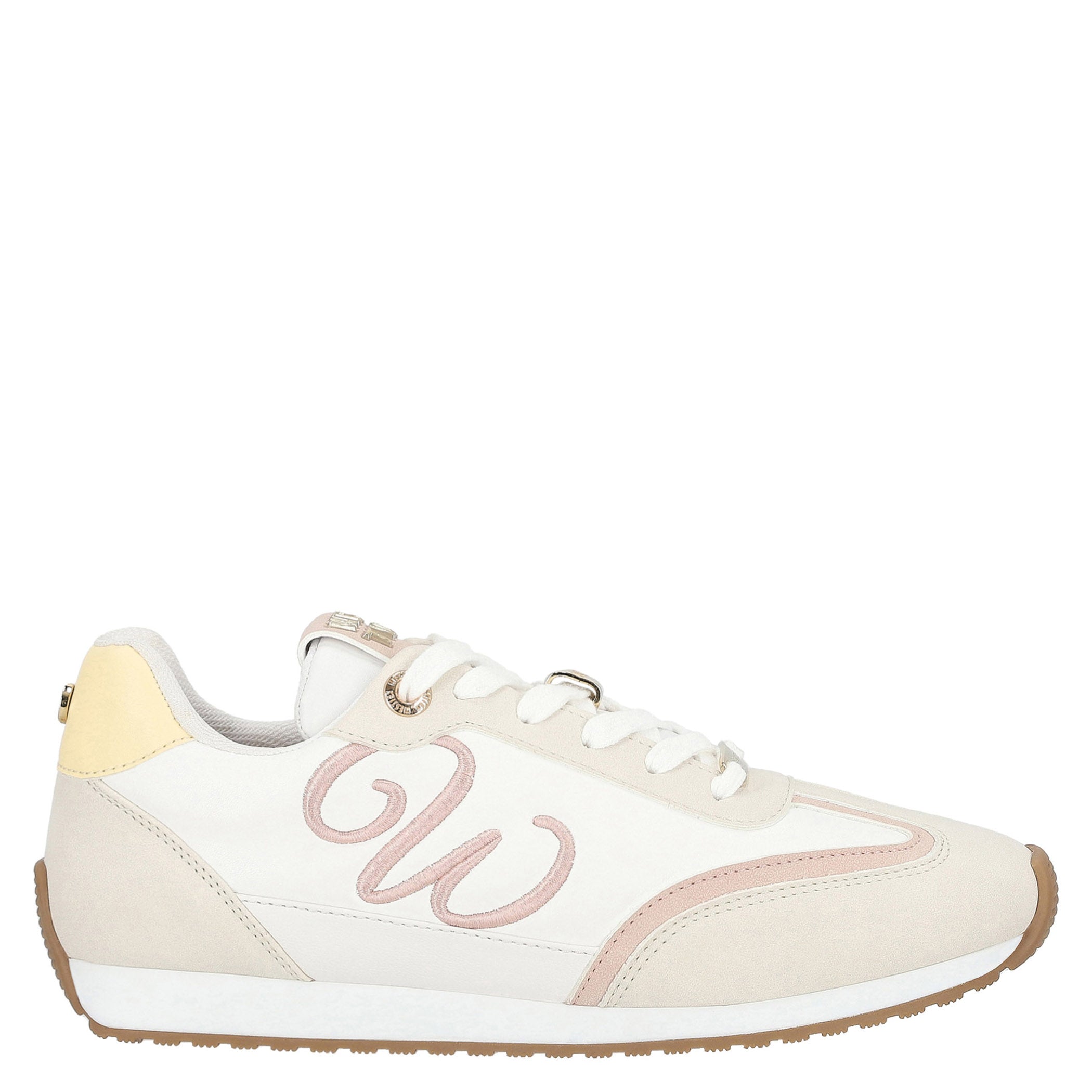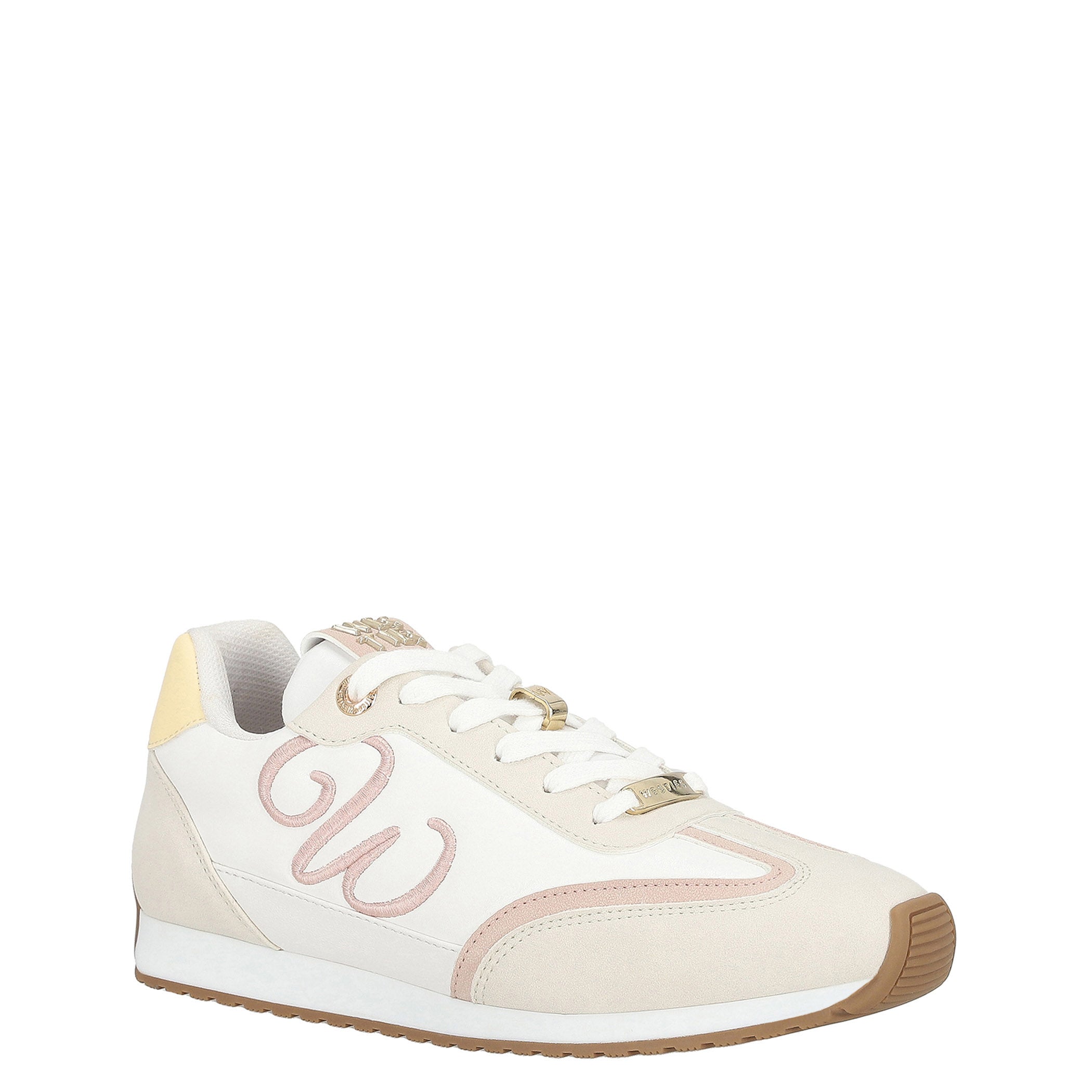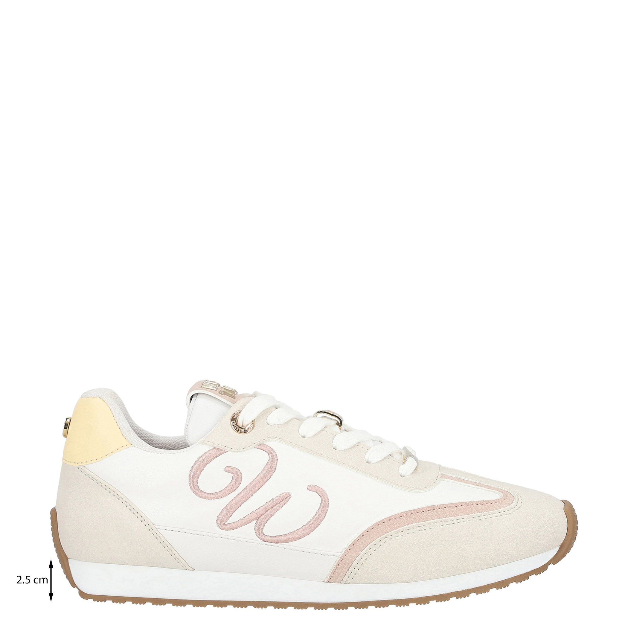 Estos tenis de material sintético con estampado de logotipo son ideales para un look casual y moderno. Con una altura de plataforma de 2.5 cm y cuña flat, ofrecen comodidad y estilo para el día a día. La fijación de agujeta asegura un ajuste personalizado, mientras que la punta redonda y la textura lisa brindan un acabado versátil. El bordado decorativo añade un toque distintivo que los convierte en un complemento único para cualquier look.