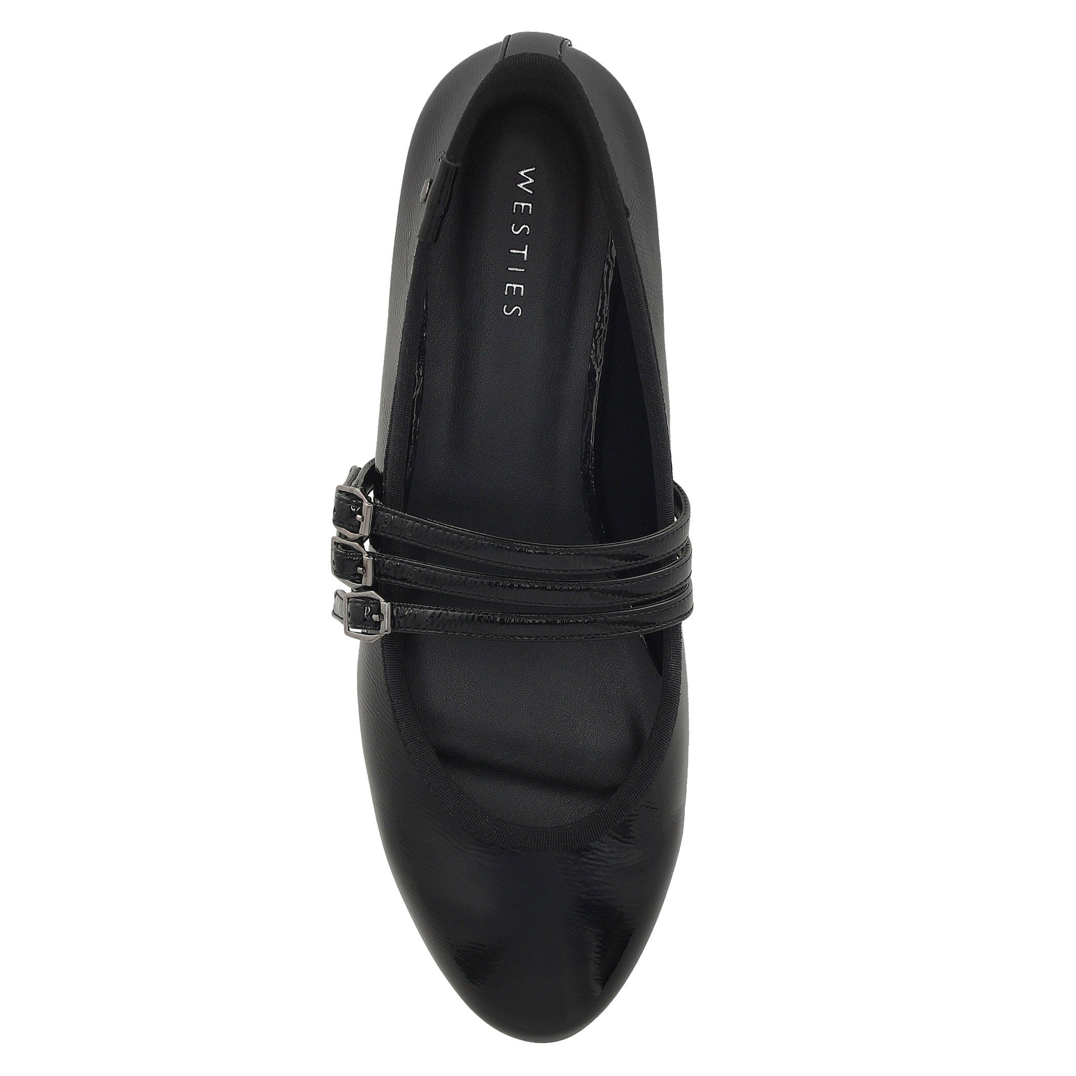 Estas ballerinas Westies son la opción perfecta para un look clásico con un toque de brillo. Confeccionadas en material de charol sintético con estampado liso y textura lisa, su acabado brillante añade un estilo sofisticado. La punta redonda y la fijación de hebilla garantizan comodidad y un ajuste seguro, mientras que la cuña flat y el tacón de 1.5 cm ofrecen confort ideal para el uso diario.