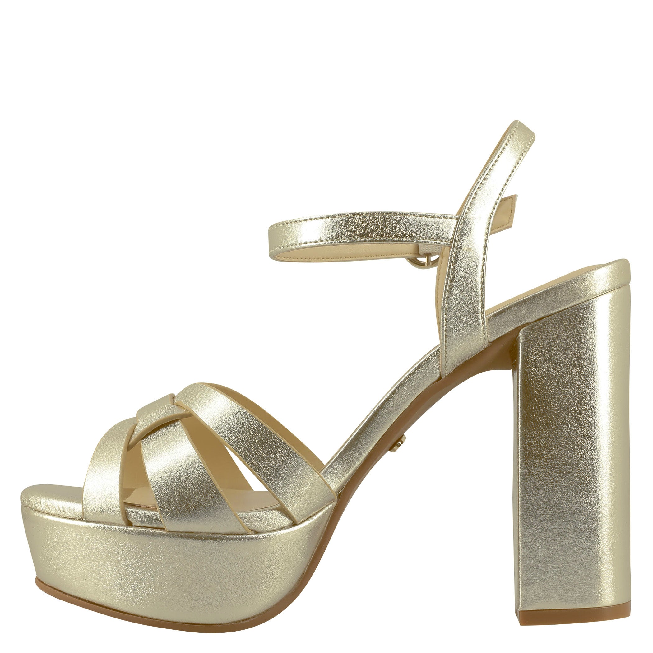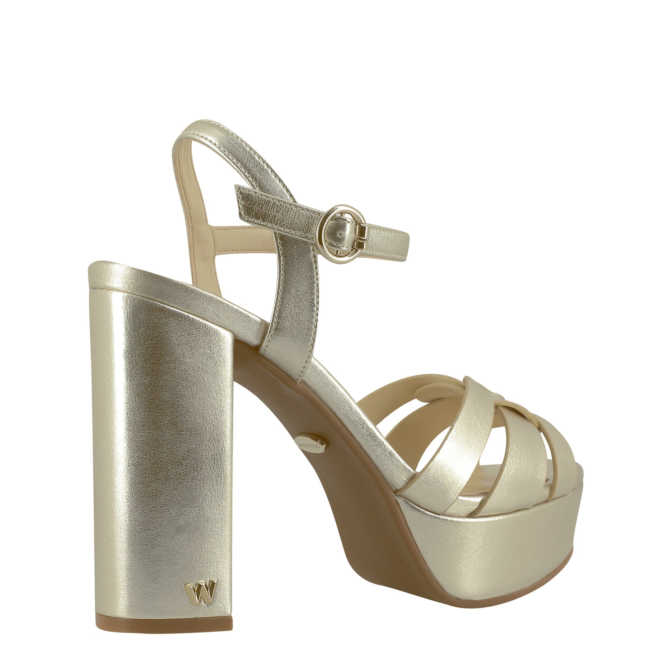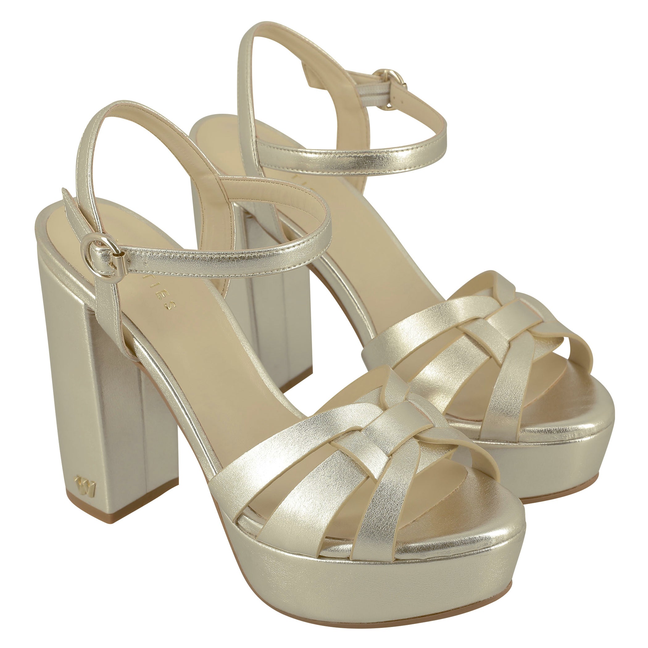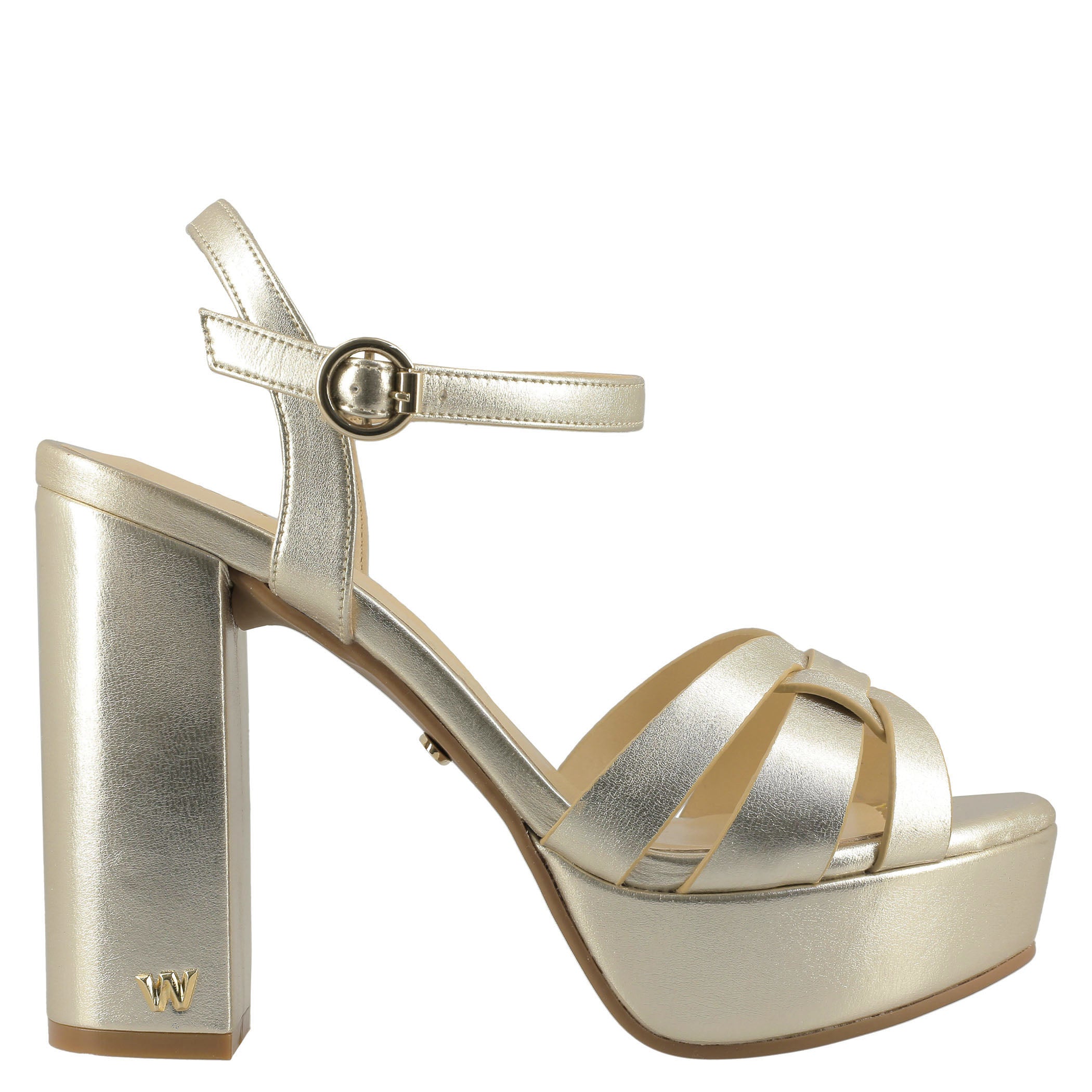 Sandalias Westies de tacón alto femeninas y frescas, con clásico detalle de logo en la parte baja del tacón. Estampado liso y pulsera de tobillo ajustable.
