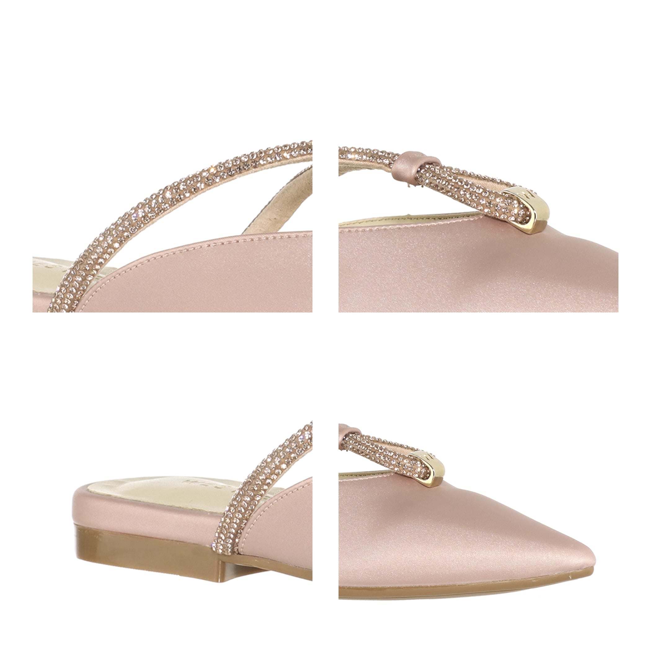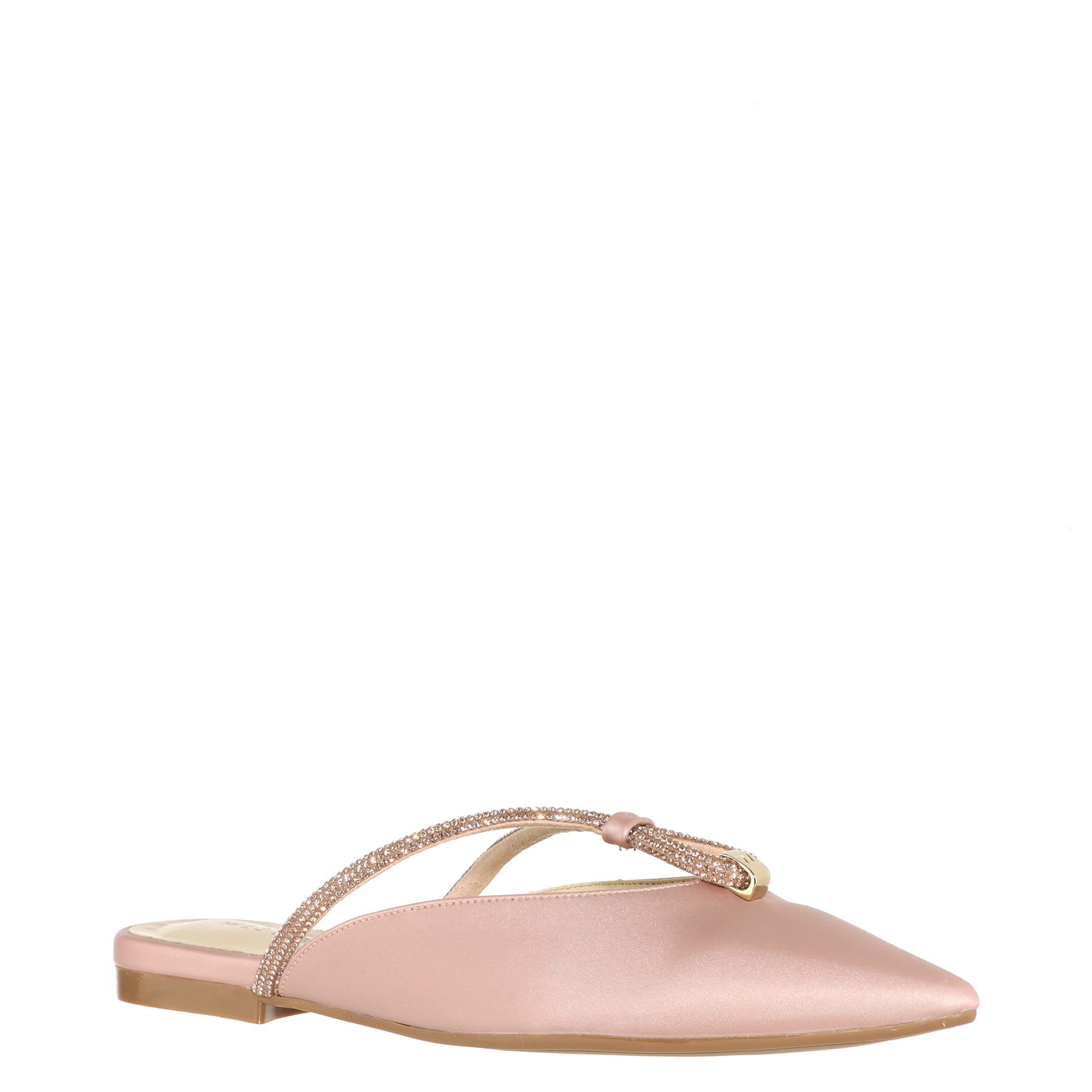 Zapato destalonado Westies para mujer elaborado en material sintético con aplicación pedrería, estampado liso, forro sintético, suela de inyección, fijación 1 tiempo, punta puntal, textura lisa, con una altura de tacón 1 cm.