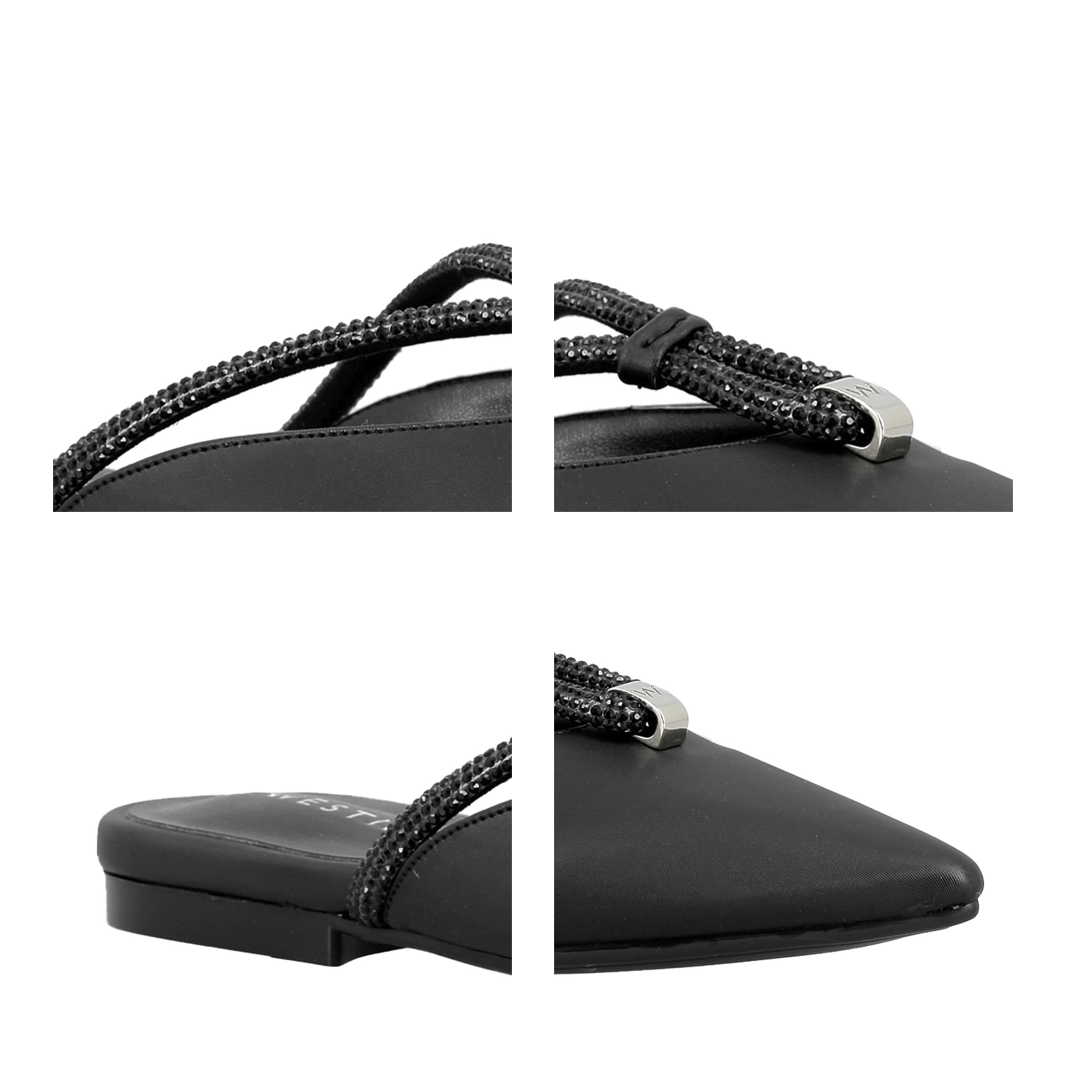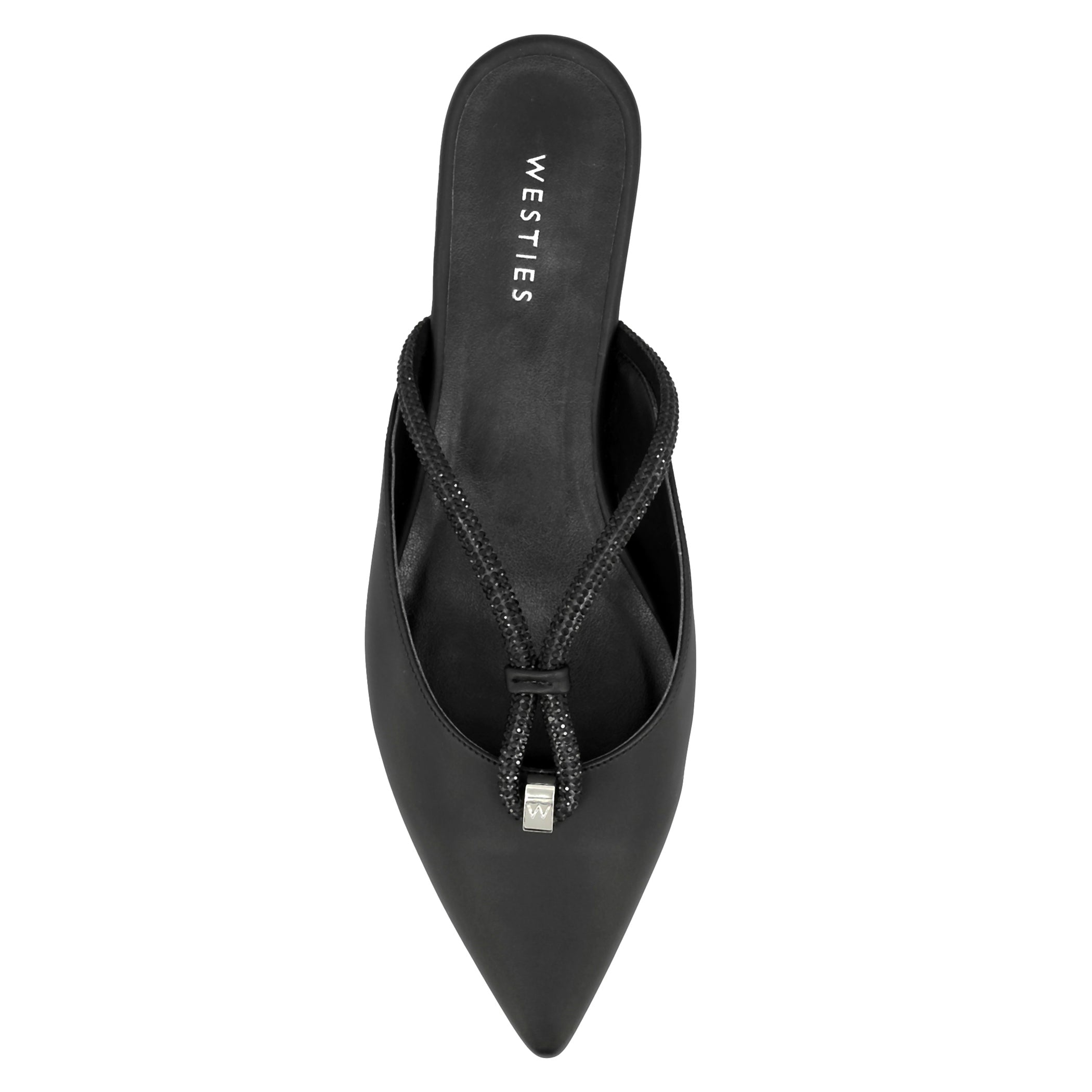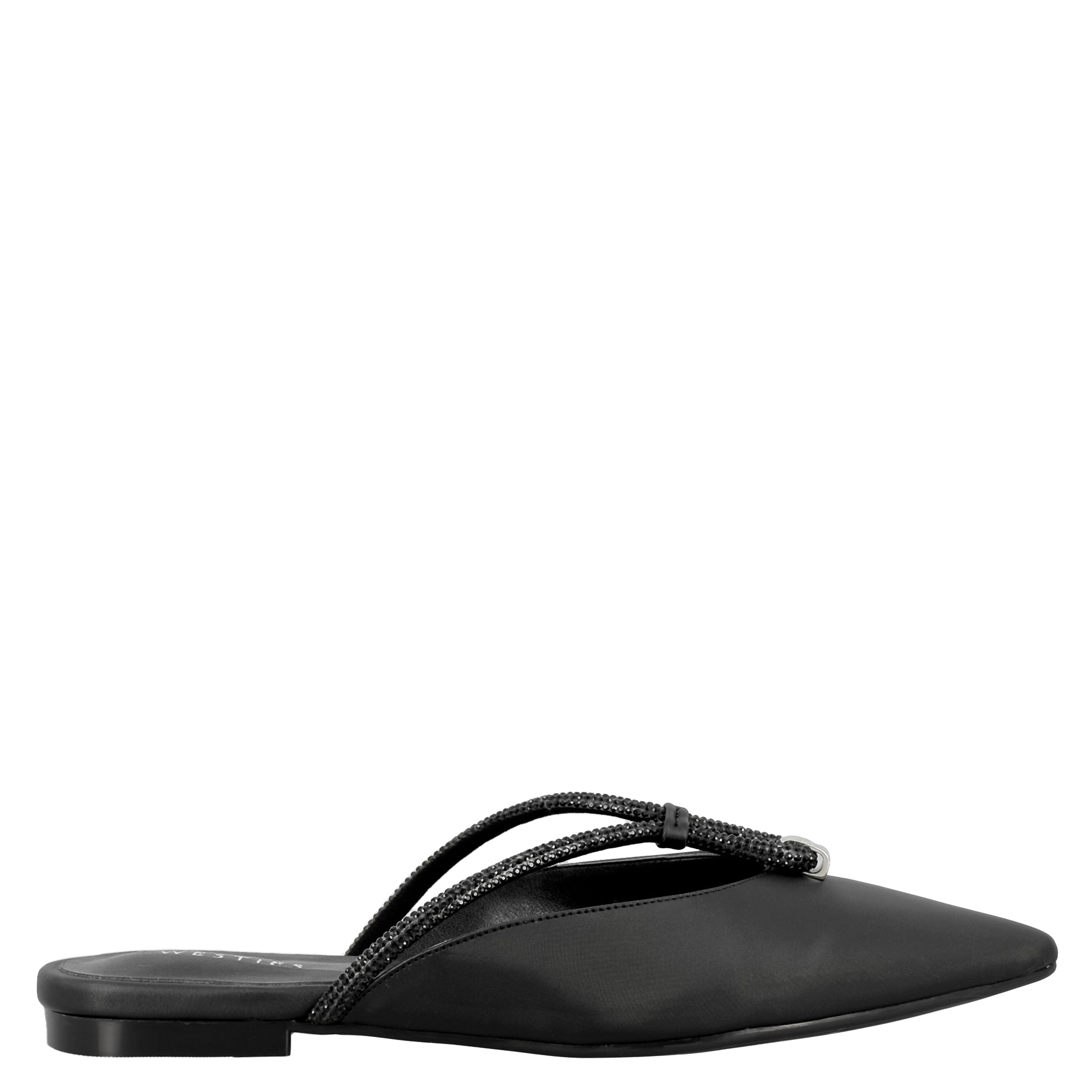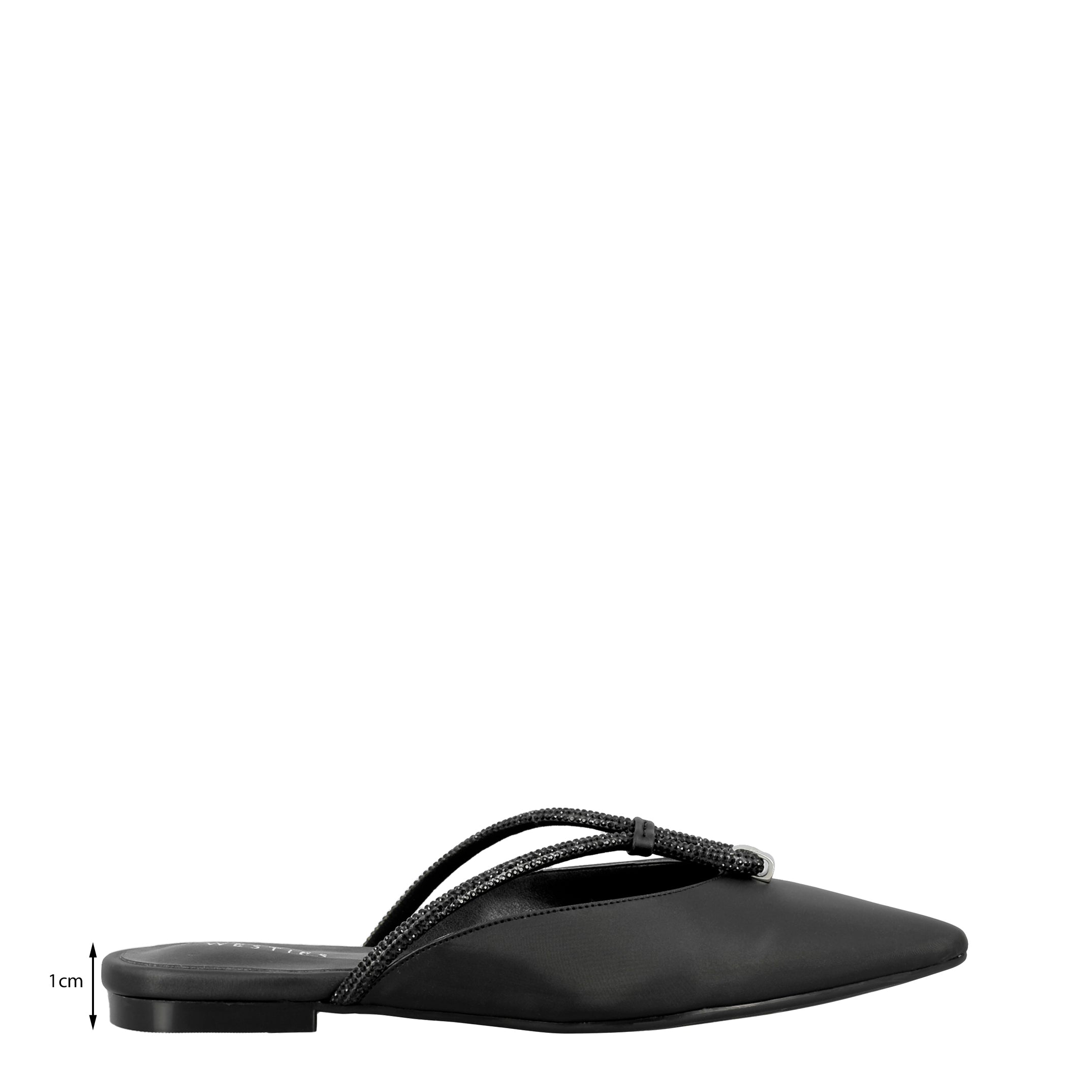 Zapato destalonado Westies para mujer elaborado en material sintético con aplicación pedrería, estampado liso, forro sintético, suela de inyección, fijación 1 tiempo, punta puntal, textura lisa, con una altura de tacón 1 cm.